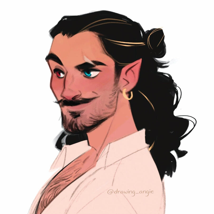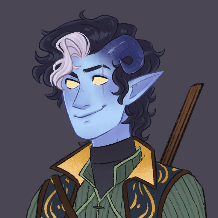 Captain Alfonso "Alfie" Ayedark at your service! Quick with a song and a slash of his sword, Alfie is the type of bard that is here for the good times, but will also be your shoulder to lean on during the tough ones. His mother left and disappeared when he was very young, his father later murdered, Alfie was left with nothing and no one and had to learn to scrape by on his own. Considering he's now a nearly impervious werewolf, democratically proclaimed captain of a flying ship, and one of the most handsome men this side of Exandria, I'd say he's doing pretty well, now.