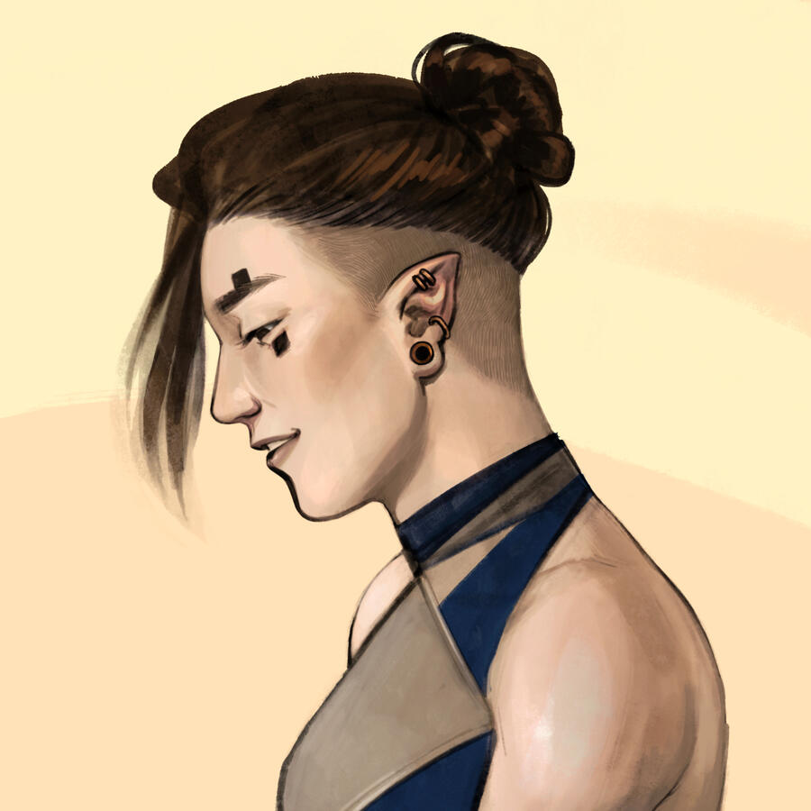 This is Shayesha "Shay" Freijadottir. A monk from the Cobalt Soul, her order focuses their intent on finding the truth and exposing corruption. A little on the brash side, she doesn't mince words and likes to get straight to the point, whether that be through conversation (interrogation) or punching. She's a little difficult to get close to, but she's a loyal and trustworthy friend, and once you get on her good side, that's where she'll stay.